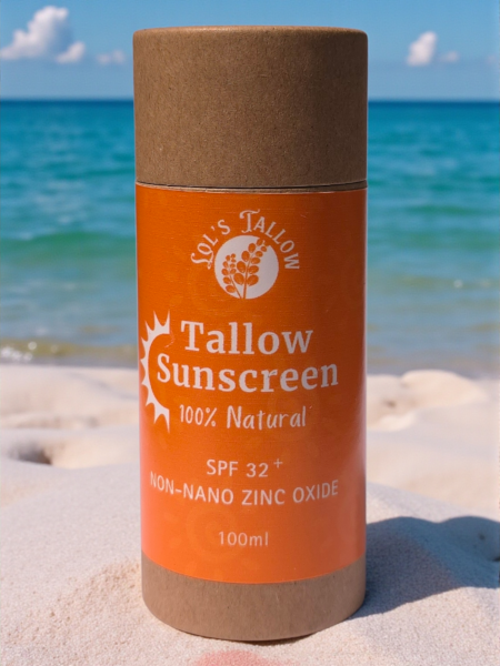 Nourish and protect your skin with our tallow-based sunscreen, made with grass-fed tallow and non-nano zinc oxide for safe, mineral UV protection. Rich in vitamins A,D, E, and K, this soothing formula blends healing fats with natural oils to moisturize while shielding your skin.